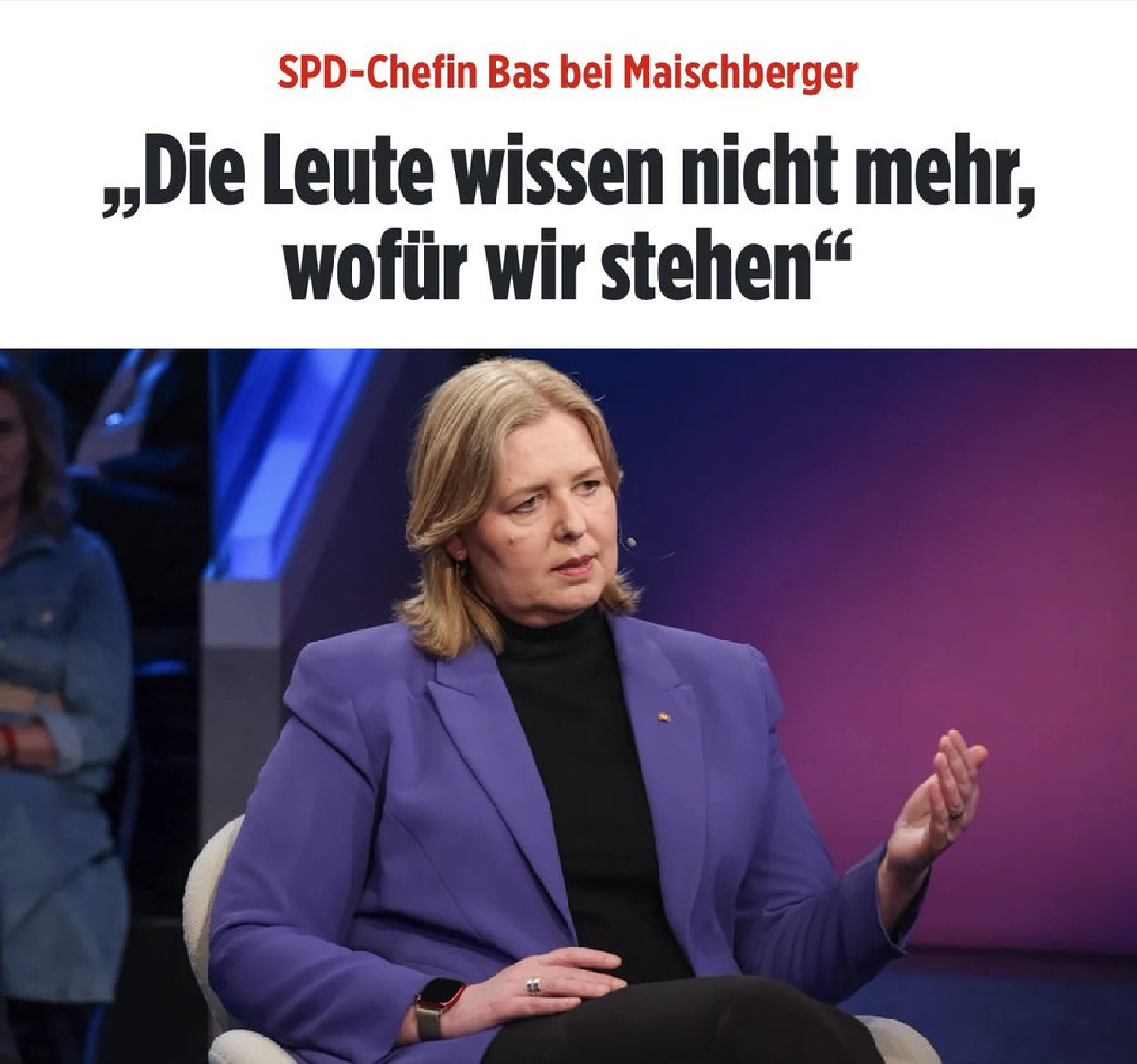 The leader of Germany’s Social Democratic Party, Bärbel Bas, on Sandra Maischberger’s talk show this week: